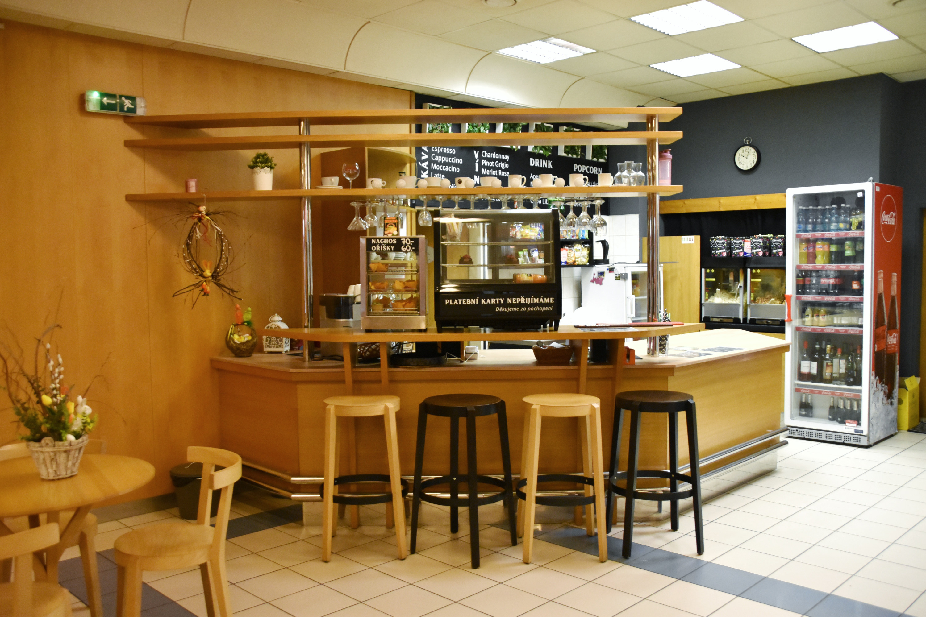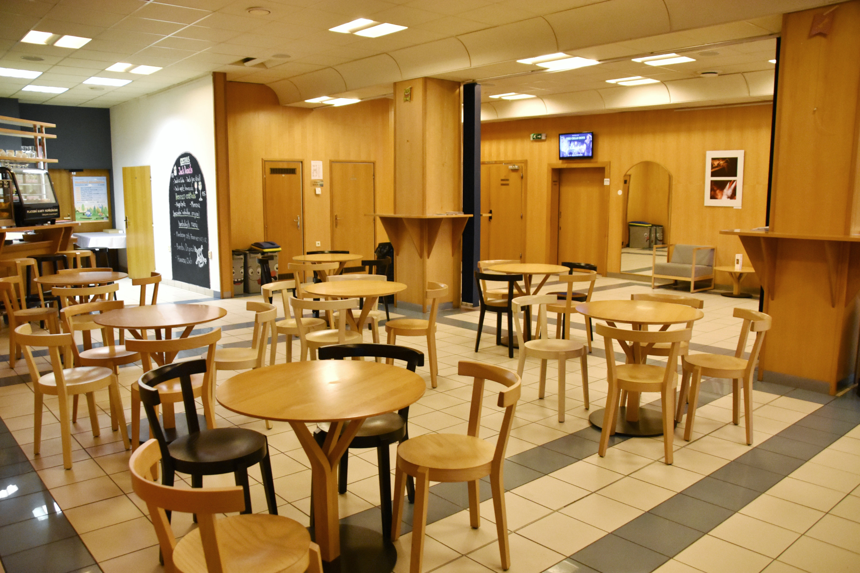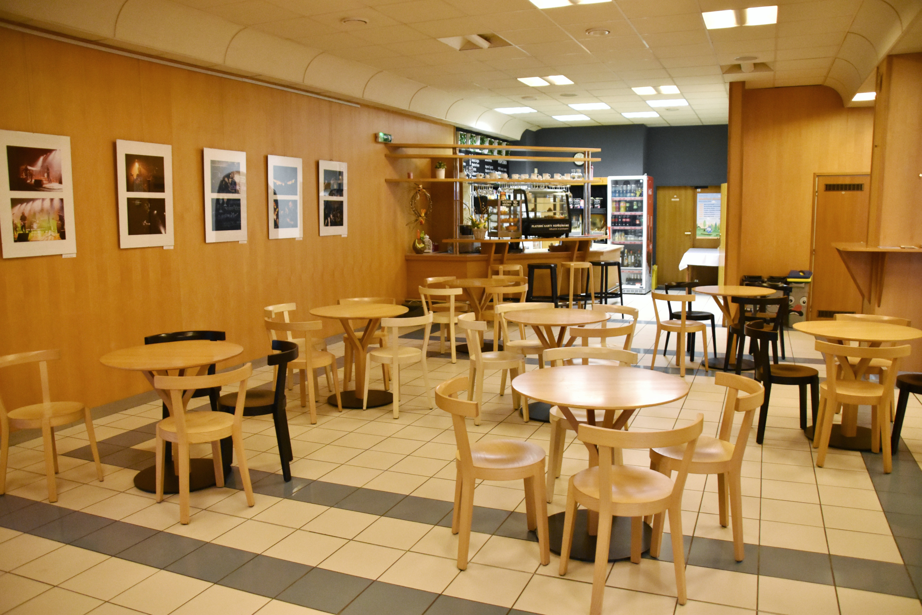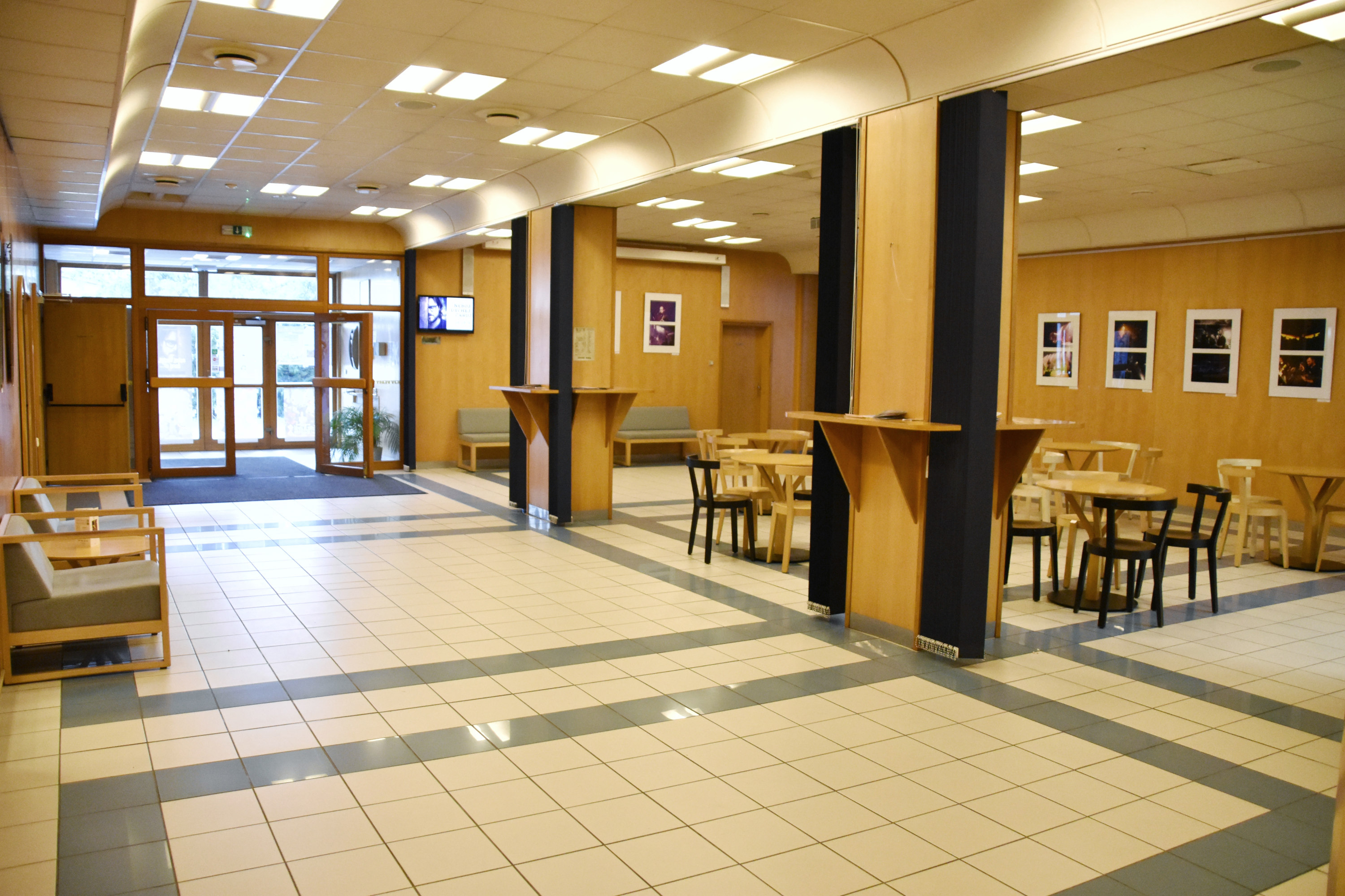 Ve foyeru jsou čalouněná křesla a stolečky, vybavený dětský koutek, šatna a obsluhovaný bar s kávovarem a strojem na popcorn. Bar otvírá vždy hodinu před plánovaným představením. Foyer má také funkci výstavního prostoru pro obrazy a fotografie.